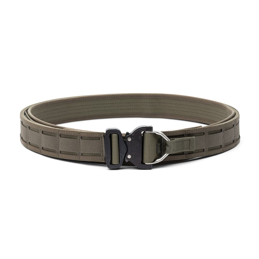 Uncomfortable and abrasive gear belts that require escape-artist skills to don and ditch are a thing of the past with our Maverick Battle Belt D-Ring. The AustriAlpin COBRA® buckle gets you in and out fast. Our Maverick Battle Belt D-Ring uses a multi-layer approach to providing all-day comfort that begins with proprietary TAC-LAM™ high-strength laminate on the outer belt in an ergonomically curved shape. It wears dual nylon webbing in the interior with a hook face that securely attaches to the interior, loop-faced nylon belt. Generous laser-cut laminate MOLLE slots provide plenty of real estate for attaching duty gear. A tie-down strap secures the D-ring when not needed.