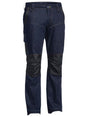 Sizes: 72R- 112R, 87 - 132S; Extras: 100% Cotton Denim 355gsm (10.5oz), 99% Cotton, 1% Lycra Denim 345gsm (10.25oz), 98% Polyester, 2% Carbon Oxford 180gsm; Features: Contrast stretch denim - front and back upper hip and back inner thigh, Curved waistband to prevent gaping at back, Contrast poly carbon oxford highlights at high abrasive areas for extra durability, Multi functional pockets, Double layer shaped knee, Hem boot cuff, Seven reinforced belt loops, YKK zipper