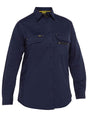 Sizes: 6-24, Extras;88% Polyester, 9% Cotton, 3% Spandex Stretch Ripstop with permanent wicking 140gsm, Features; Lightweight stretch ripstop fabric with permanent wicking, Bisley X Airflow™ ventilation at multiple heat stress areas, including laser perforated self fabric panels on side of body and underarms, Two chest pockets with touch tape closure, Pen division and zipper pocket on left chest pocket, Pen pocket on left sleeve, Two piece structured collar, Two button adjustable sleeve cuff, Registered design