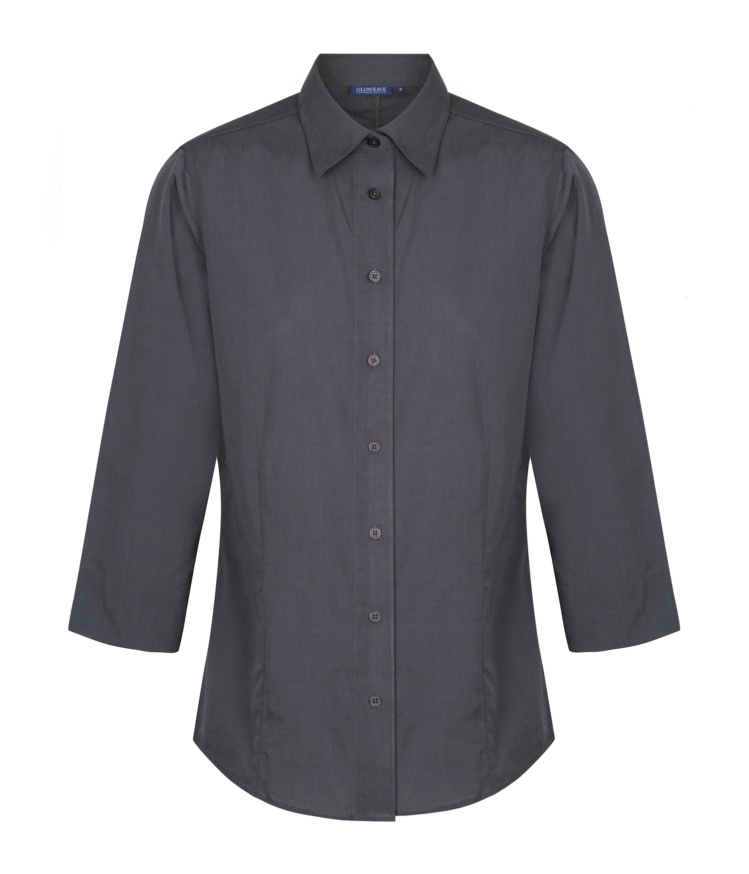 Womens 3/4 Sleeve End On End Shirt, Career Contemporary Fit, Double Fold Front, Front & Back Darts, Classic Collar, Split Cuff Detail