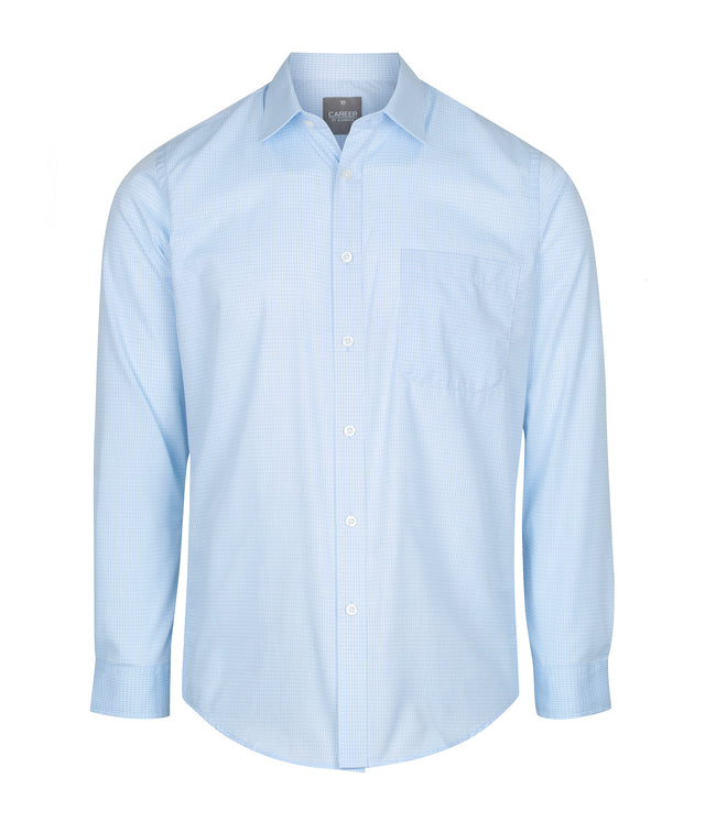 Mens Long Sleeve Textured Mini Check Shirt, Career Contemporary Fit, Placket Front, Classic Collar, Convertible Cuff, Left Chest Pocket