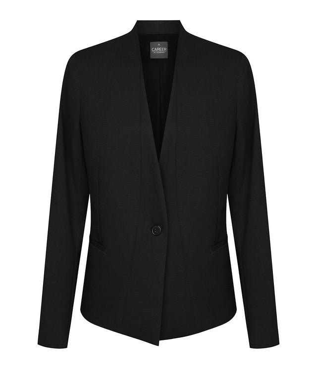 Womens Crop Jacket, Single Button, Shawl Collar, Side Jet Pockets, Angle Front & Cropped Back Hem