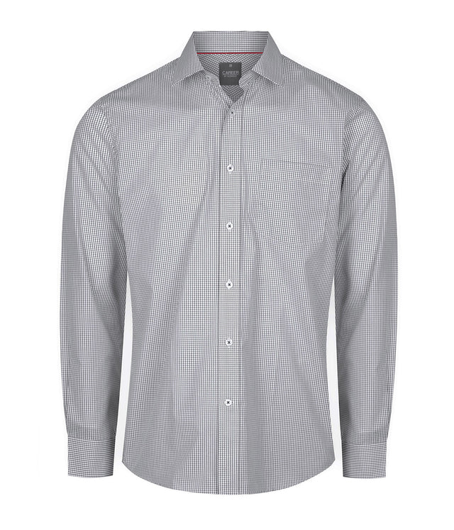 Mens Long Sleeve Micro Check Shirt, Contemporary Fit, Placket Front, Classic Collar, Convertible Cuff, Left Chest Pocket