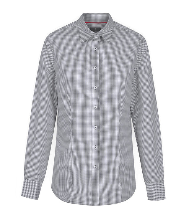 Womens Long Sleeve Micro Check Shirt, Womens Slim Fit, Placket Front, Front & Back Darts, Hidden Modesty Button, Classic Collar, Adjustable Cuff