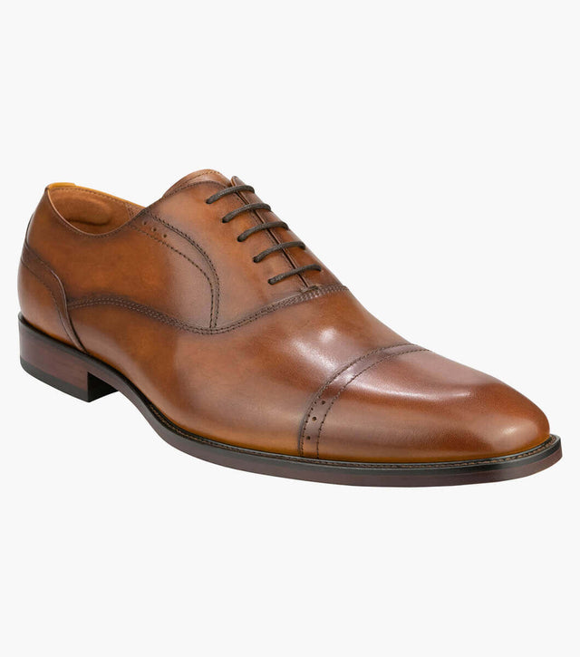 The Florsheim Sorrento Cap Toe Derby features a rich smooth leather upper, elegant perfing details, and a sleek silhouette. Worn with everything from a suit to jeans, you’ll love the comfort of its cushioned footbed and breathable leather linings.