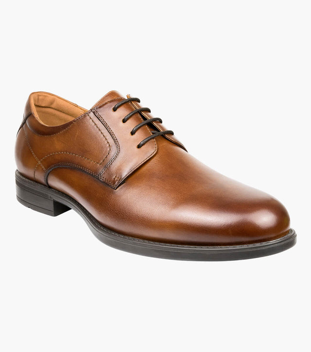 The Florsheim Brookfield Plain Toe Derby has a plain almond shaped toe that is highlighted by elegant stitching details on the side. This full grain calf leather shoe has breathable Suedetech linings and a fully cushioned footbed for all-day comfort.