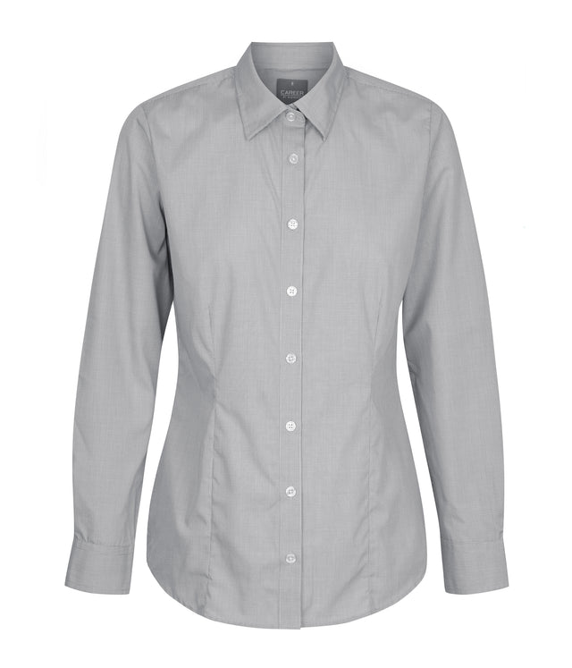 Womens Long Sleeve Puppy Tooth Shirt, Career Contemporary Fit, Placket Front, Classic Collar, Mitred Cuff