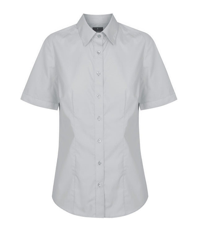 Womens Short Sleeve Premium Poplin Shirt, Career Slim Fit, Placket Front, Front & Back Darts, Hidden Modesty Button, Classic Collar