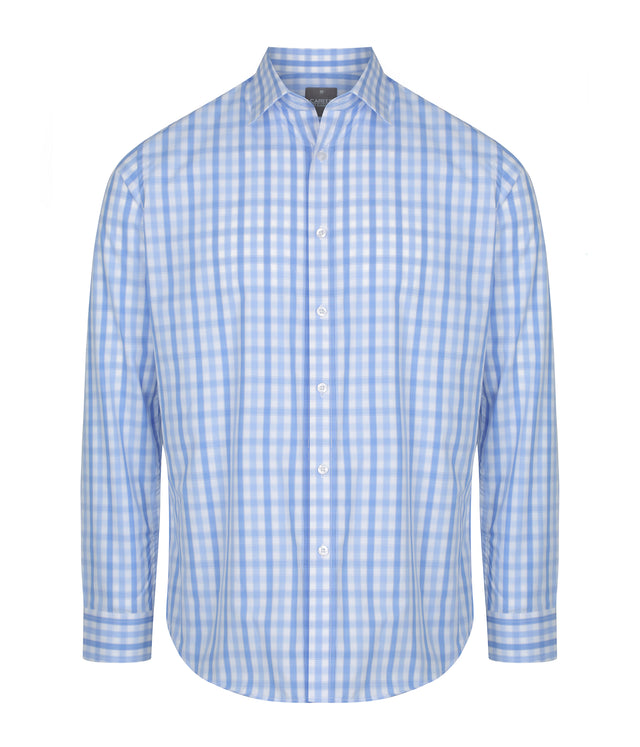1711L Foxton-Tonal Check Long Sleeve Shirt - Blue is backordered and will ship as soon as it is back in stock.