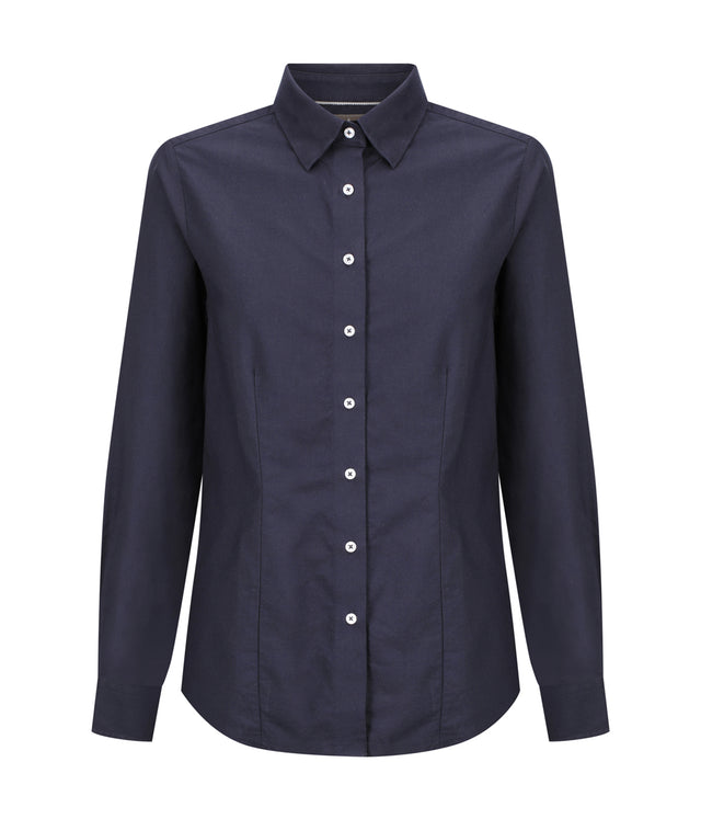 Women's Long Sleeve Cotton Oxford Shirt, Long Sleeve, Slim Fit, Front & Back Darts