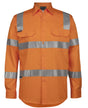 Classic fit 100% cotton for 100% comfort in a 150gsm double pre-shrunk drill JB's reflective tape stands up to 50 times domestic wash Complies with standard AS/NZS 1906.4:2010 and AS/NZS 4602.1:2011 Day & Night Complies with Standard AS 4399:2020 for UPF Protection (UPF 50+) Complies with AS 7471:2019 Australian Rail PPE minimum requirements Wide back neck yoke with concealed mesh, cooling gussets at underarms Two front pockets with button down flaps and pen insert Contrast panel on front, back and collar Curved hem with back tail styling Two piece collar