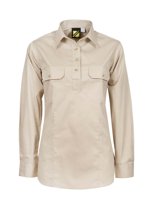 WSL505-Ladies Half Placket Shirt - Cream is backordered and will ship as soon as it is back in stock.