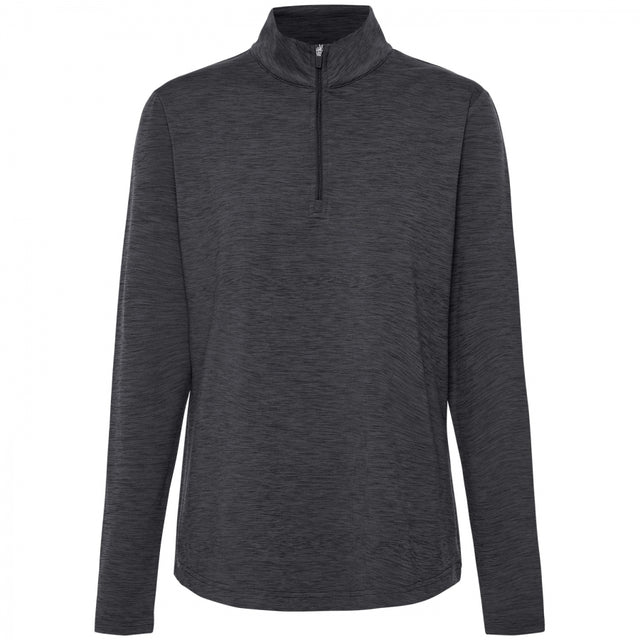 SCORLO005-Ladies Heather 1/4 Zip Pullover - Charcoal Marle is backordered and will ship as soon as it is back in stock.