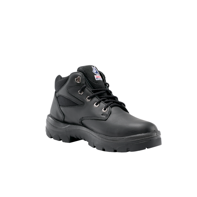 The Whyalla is a 95mm men’s derby style, lace-up safety boot with padded collar and tongue. With a TPU Outsole that is heat resistant to 130°C that also offers Anti-Static properties, the Whyalla is a popular 100% comfortable choice for Bricklayers, Glaziers and Sand Blasters. Made from premium Water Resistant Leather and available in black and wheat colours, the Whyalla includes a 200 joule Steel Toe Cap for ultimate safety.