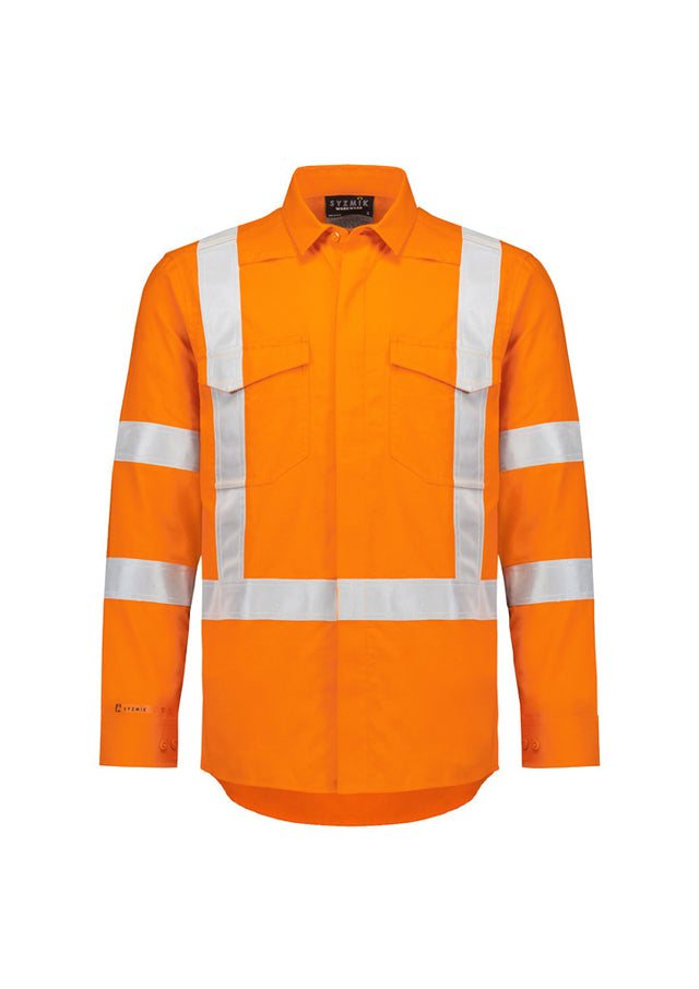 ZW187-Mens Orange Flame Lightweight Ripstop X Back Taped Shirt