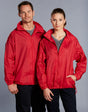 Waterproof with tape-sealed seams. Concealed hood. Jacket folds in a separate bag.