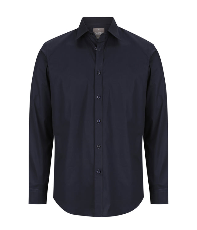Men's Long Sleeve Cotton Stretch Shirt, Slim Fit, Placket Front, Classic Collar, Convertible Cuff, No Pocket