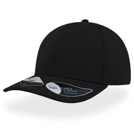 Structured front panels|Mid visor|PVC closure|6 sewn eyelets|Sweatband: 100% cotton|8 rows on visor|Sticker on visor|Fabric: 100% polyester